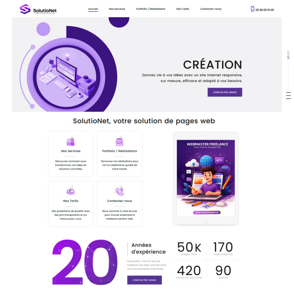 Tarifs transparents et adaptés : vous connaissez le coût de votre site, l’offre est personnalisée à vos besoins en design, hébergement et référencement. Puis, grâce à un contrat annuel, je deviens votre webmaster dédié, toujours présent à vos côtés.